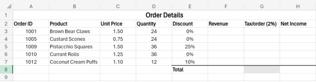 - Correctly enter data into a table in the worksheet.
