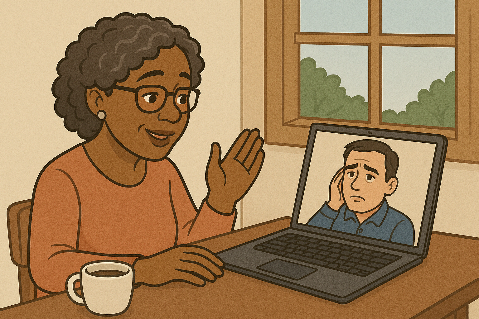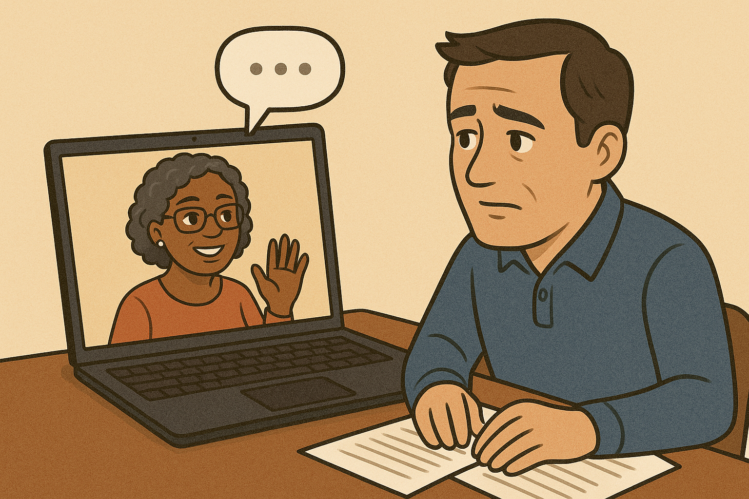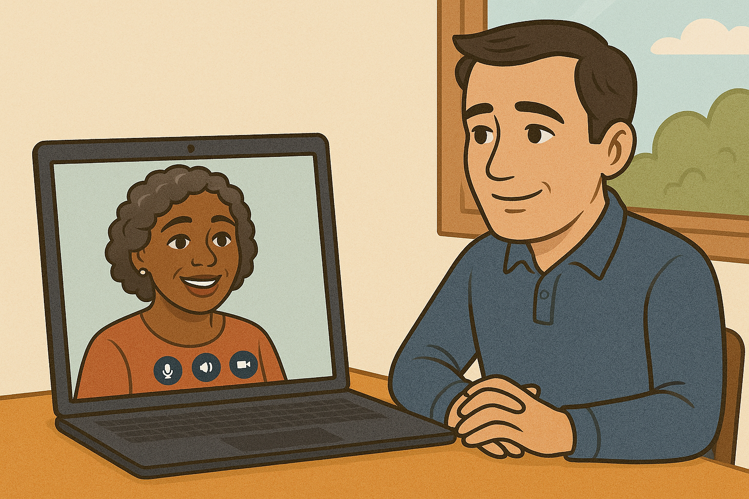 After several conversations, Maya helps Eli identify a meaningful goal: attending a local parent support group. Together, they work through his practical and emotional barriers, such as limited time and discomfort with groups, breaking the process into manageable steps.