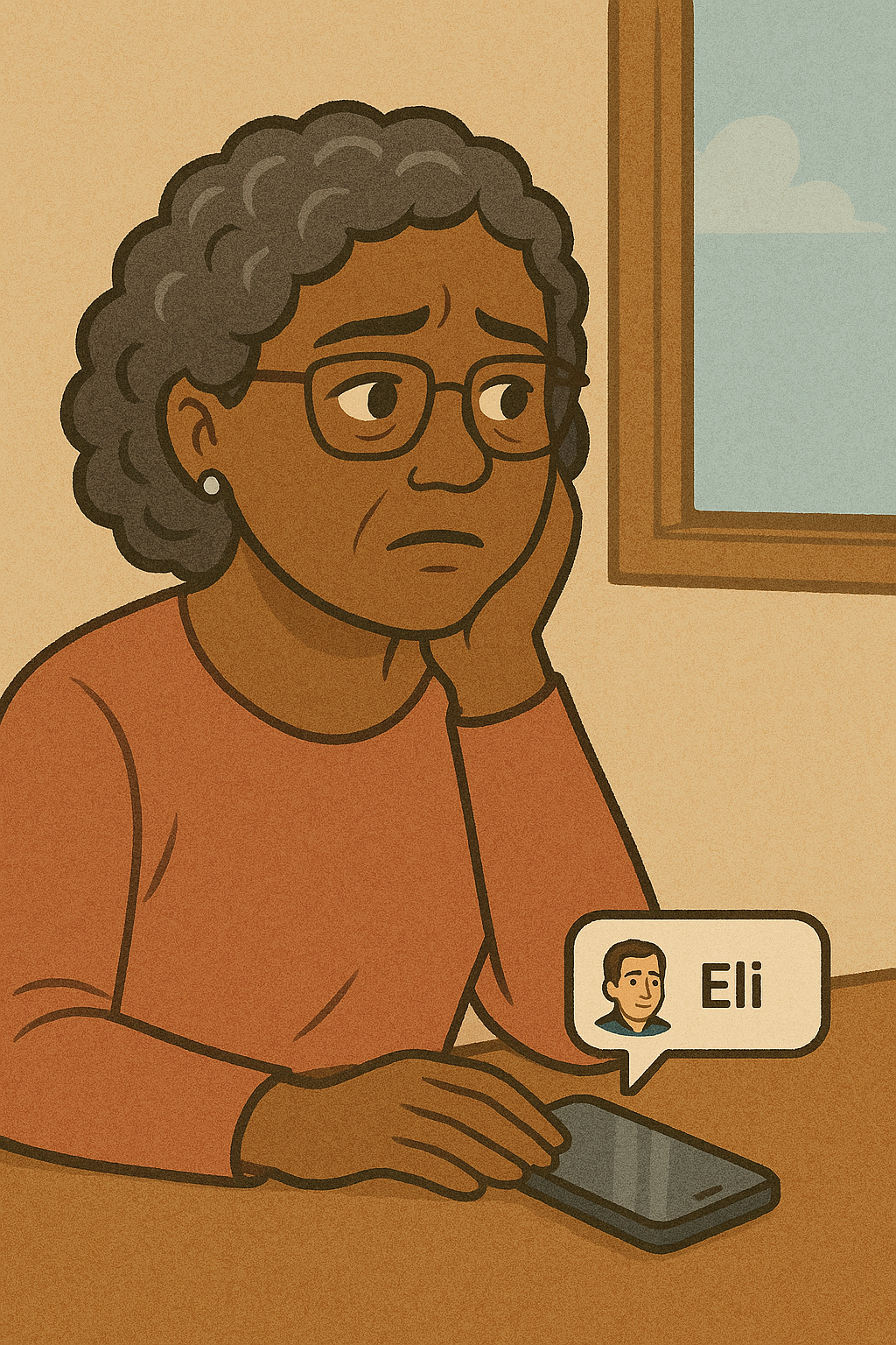 Eli is a father whose teenage son was recently diagnosed with bulimia. Unlike Maya, Eli is at the beginning of the caregiving journey. He feels overwhelmed by guilt, confusion, and fear, and struggles to find someone who truly understands his experience.