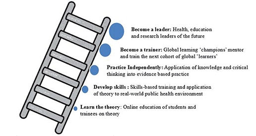 Clearly addressing these challenges will require a massive effort to build workforce capacity and Peoples-uni has developed a model of online global learning: Building public health capacity through online global learning. This course, Public Health - the basics, is one of a series of Open Online Courses of designed to meet this need (see others here) . The key features of the model are: