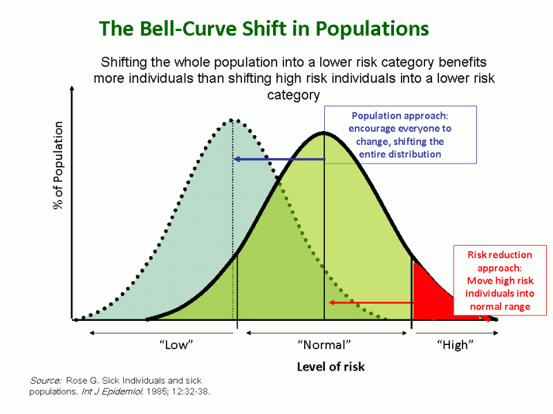 "It makes little sense to expect individuals to behave differently from their peers; it is more appropriate to seek a general change in behavioural norms and in the circumstances which facilitate their adoption." -- Geoffrey Rose, 1992.