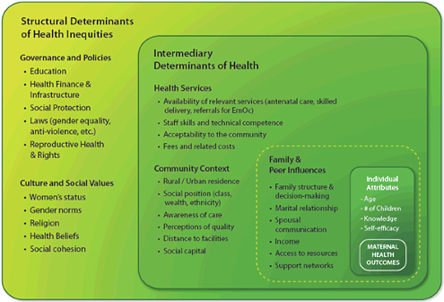 There are also social and behavioural causes, as described in this page from WHO Social determinants approach to maternal deaths. The picture below comes from this site: